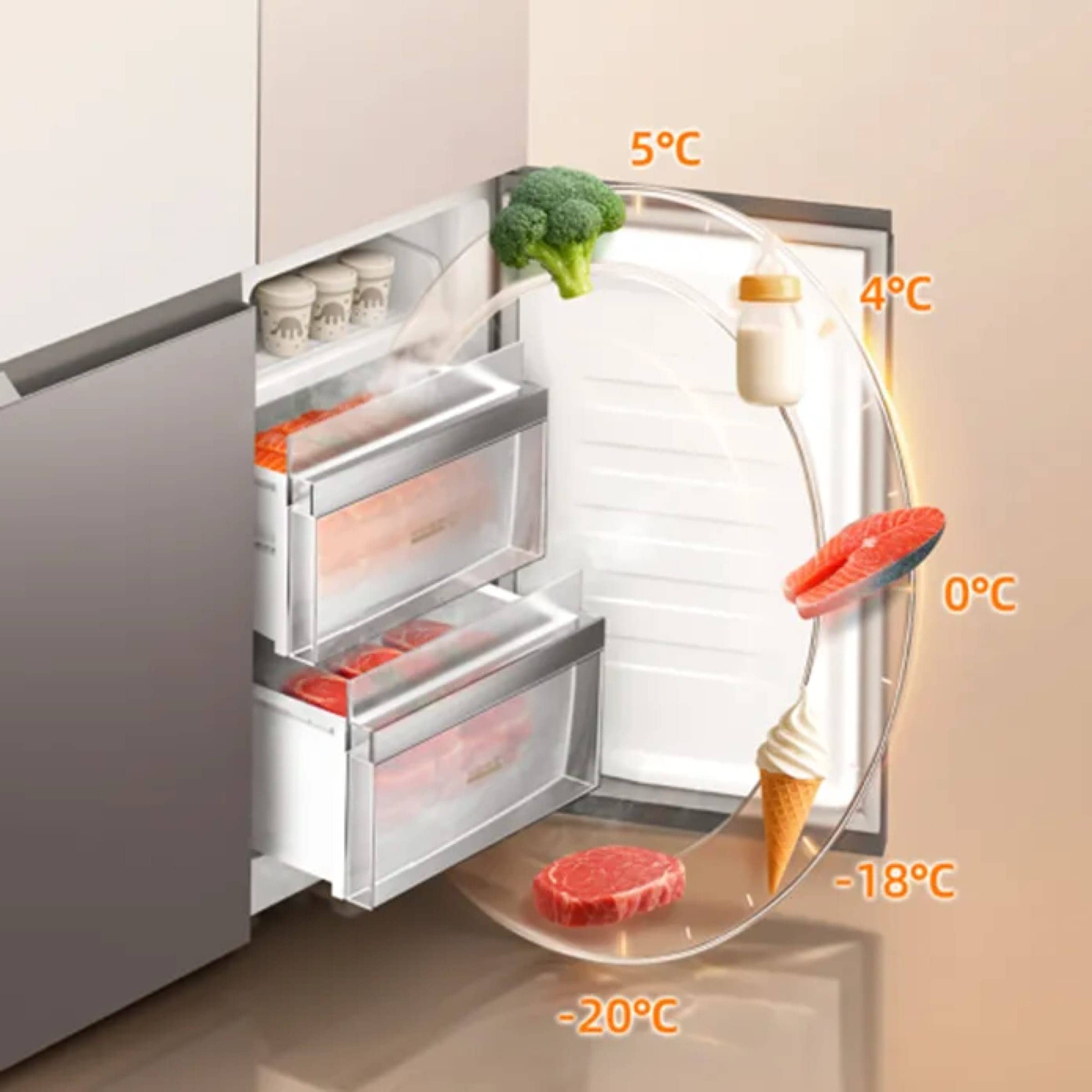 配备 82L 独立母婴变温舱,支持-20℃~5℃宽幅调温,满足母婴全周期储存需求。无论是孕期、哺乳期、辅食期,统统轻松满足,4℃下储存母乳做到DHA营养成分不流失;内胆采用 PS6 奶瓶级材质,通过欧洲CE与ROHS双认证,搭配AG+蓝晶除菌技术,抗菌率高达99.99%,杜绝食材串味与污染,全方位守护母婴健康。