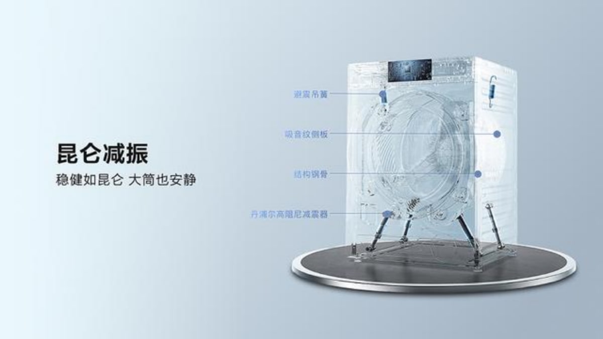 TCL超级筒洗衣机还搭载昆仑减振系统,电线、水管、风机、配重块等零件的形状和位置都经过重新设计,在机身外部,高强度的四方钢骨和吸音纹侧板,能够用稳定的结构减少噪音逸散。在机身内部,4套高阻尼减振器、 2组避震吊簧,吸能的同时还能将工作噪音降低。