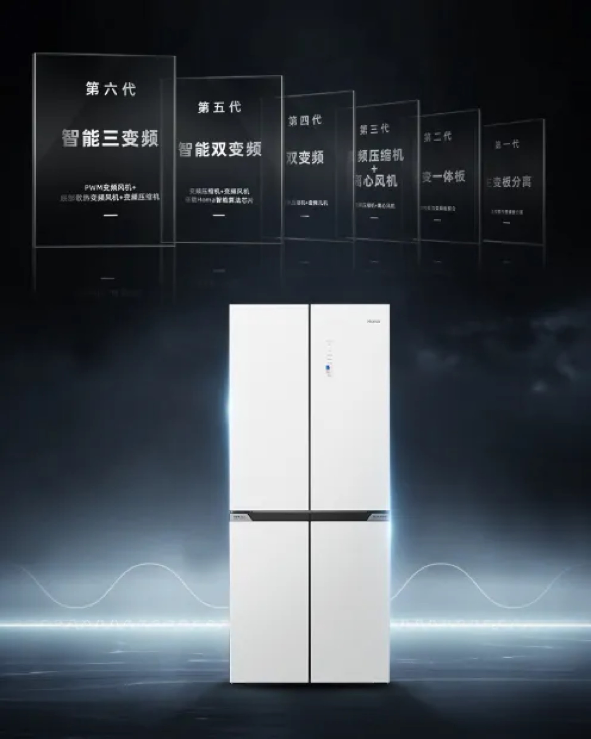2、智能三变频: 奥马439全嵌冰箱搭载智能三变频技术,变频压缩机、PWM变频离心风机以及底部散热变频风机,实现高效节能与智能化储鲜。该技术不仅让底部散热高效运行、大幅降低能耗,还能够根据储存自动调整运行状态,为用户提供更稳定、更高效的储鲜体验。