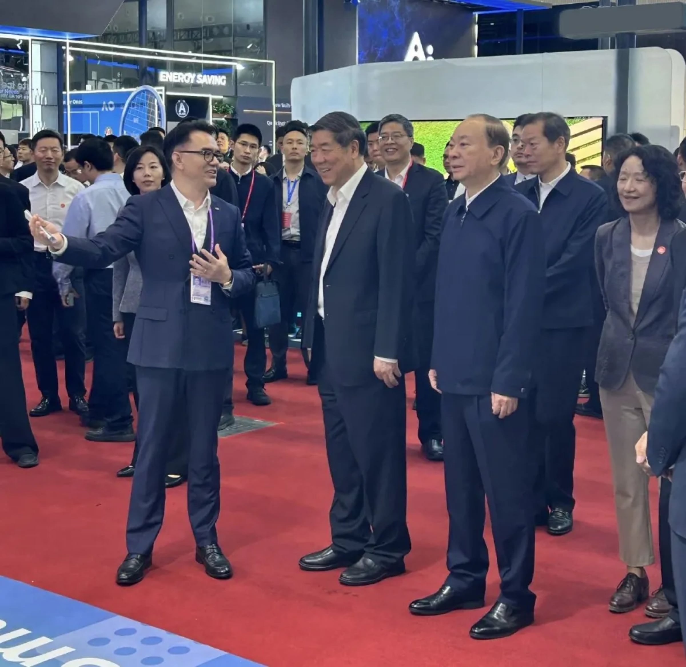 何立峰来到TCL展台参观,在黄坤明的陪同下,现场体验TCL多款创新产品,并对TCL在科技创新和全球化发展方面取得的成就给予高度评价。在TCL展区,何立峰饶有兴致的体验了TCL全球最大115寸QD-Mini LED 电视、全球最小可量产双目全彩AR眼镜雷鸟X3 Pro及TCL 冰箱、TCL小蓝翼C7新风空调等创新产品。